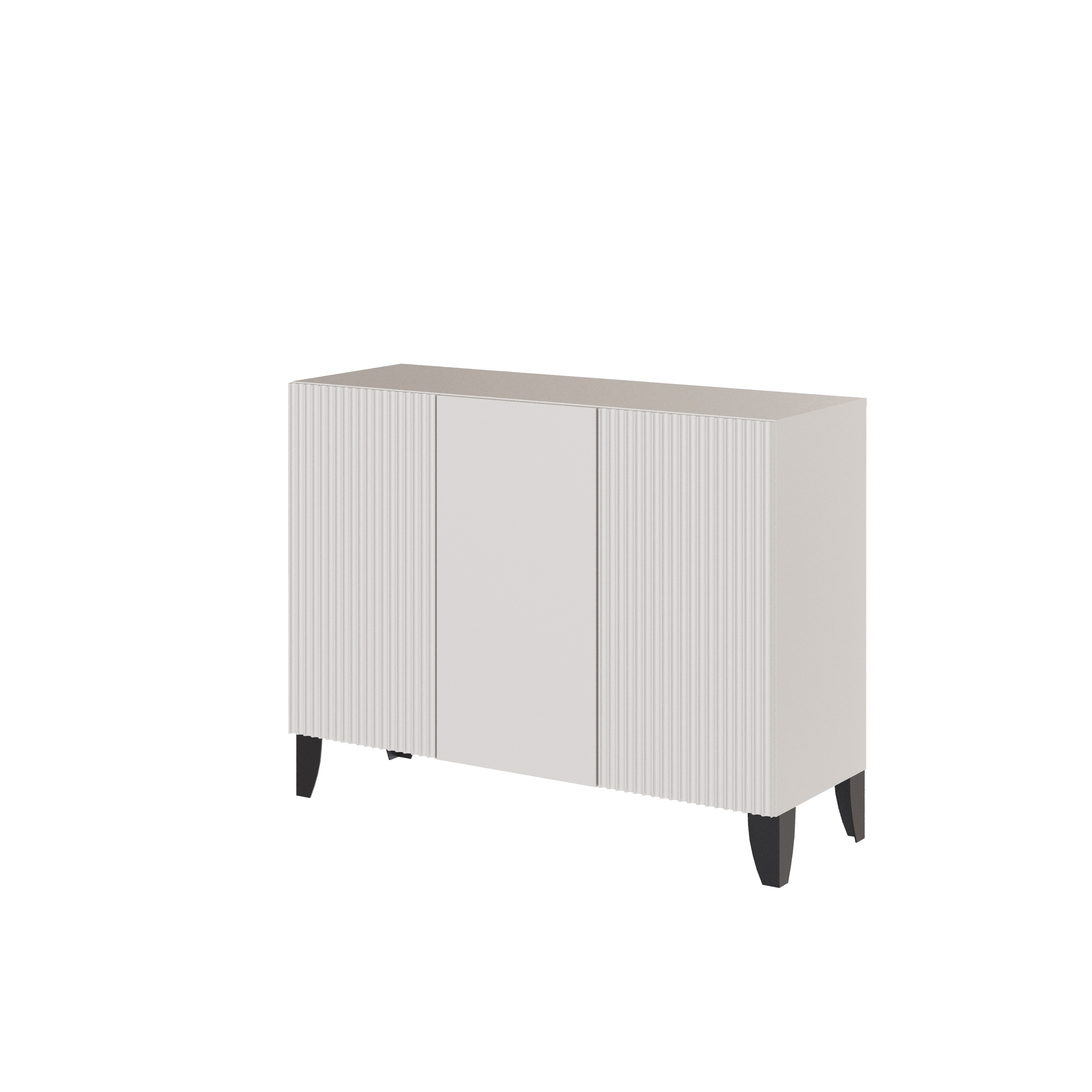 Комод из модульной серии Сириния дополнит современный интерьер комнаты. Вместительные полки за распашными дверьми позволят организовать место хранения белья и одежды, аксессуаров и других нужных предметов.