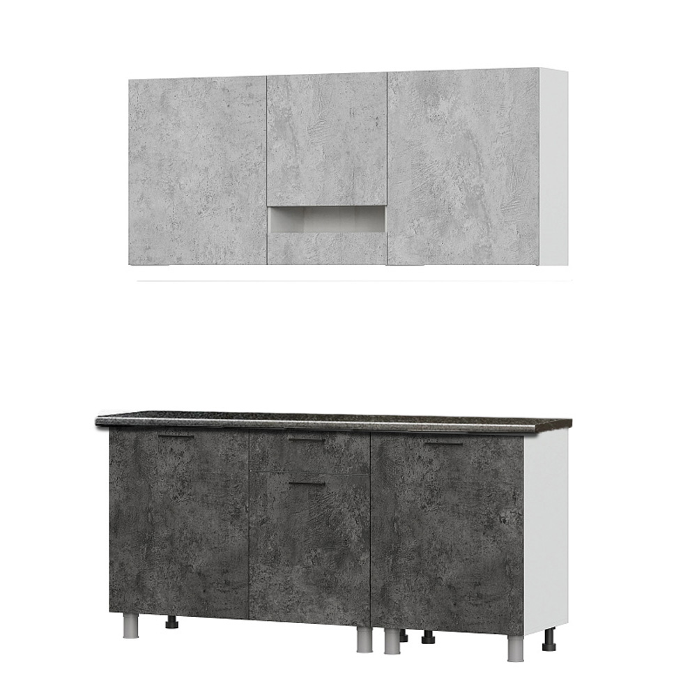 Готовая кухня Розалия (со столешницей 26 мм), Цемент светлый, Цемент темный