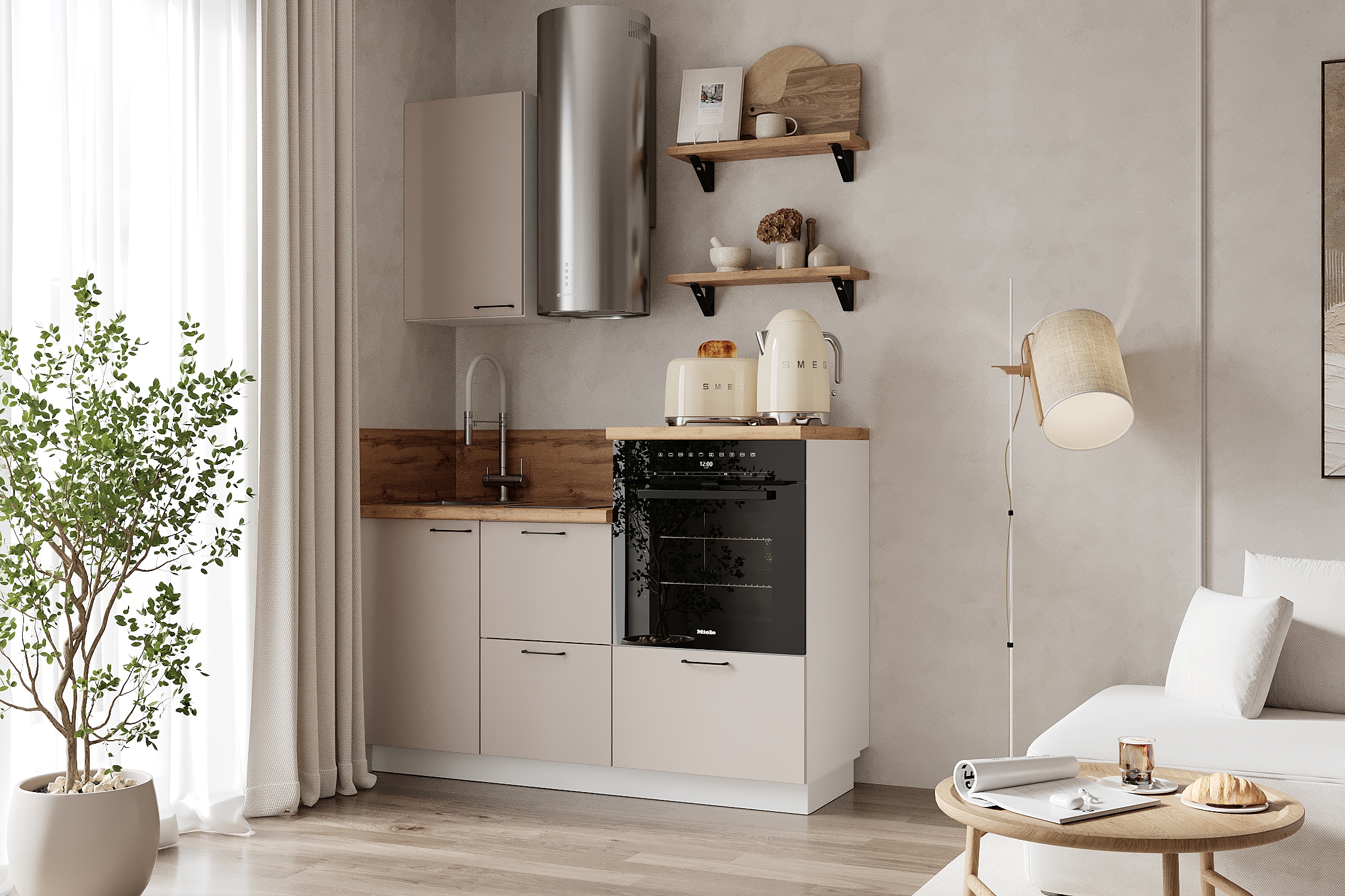 Кухня «Лизет» сочетает петербургскую элегантность и современную функциональность. Вдохновлённая эпохой Петра I и архитектурой Петербурга, она объединяет благородные цвета, тёплую древесную текстуру и лаконичные линии — для создания уютной и гармоничной кухни.