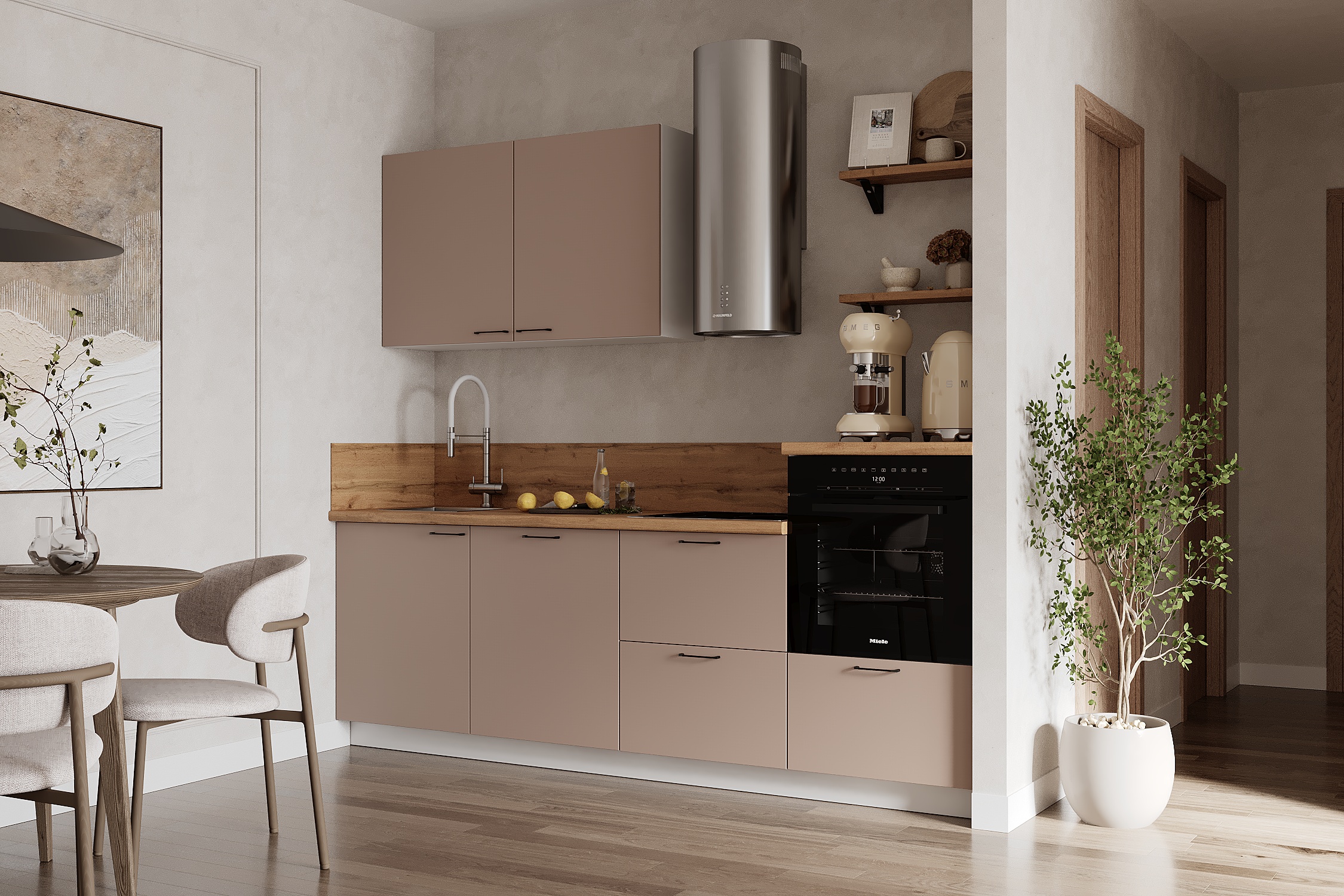 — Эстетика и зонирование: высокий модуль для духового шкафа делает интерьер аккуратным и современным.