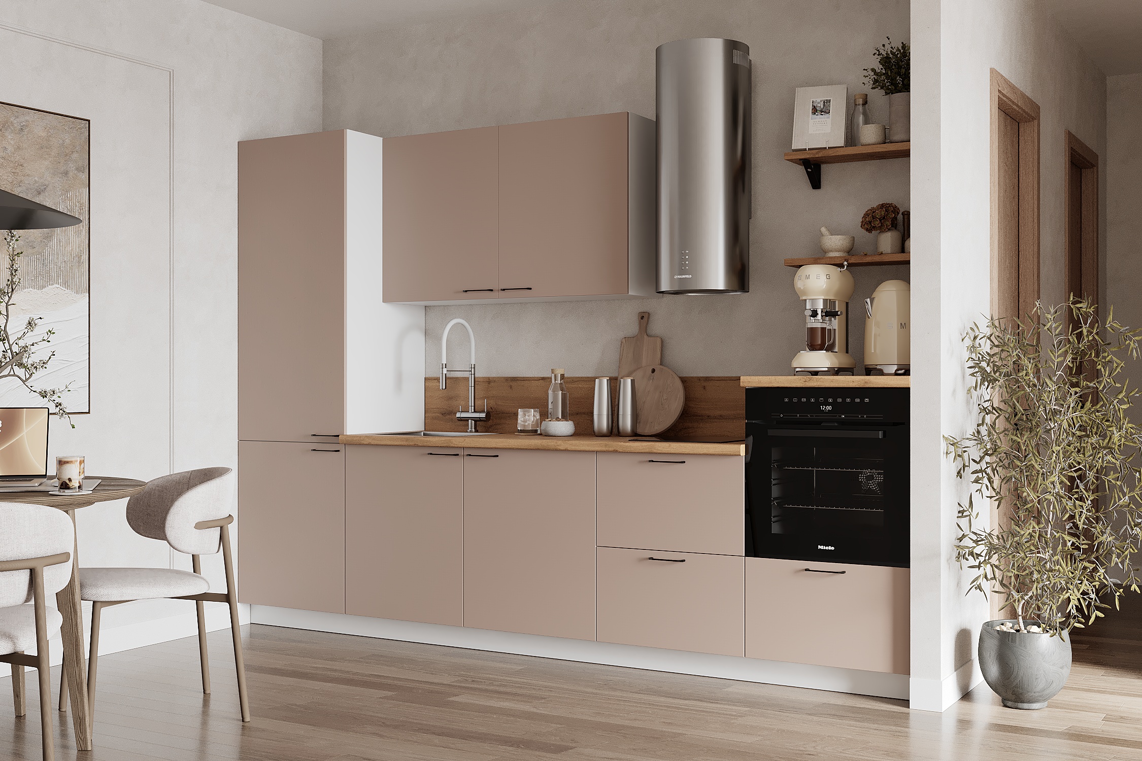 — Эстетика и зонирование: высокий модуль для духового шкафа делает интерьер аккуратным и современным.