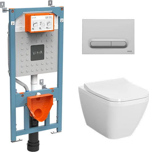 9856B003-7206 Комплект: Integra Square унитаз подвесной безободковый с тонким сиденьем МЛ+ инсталляция+панель смыва матовый хром