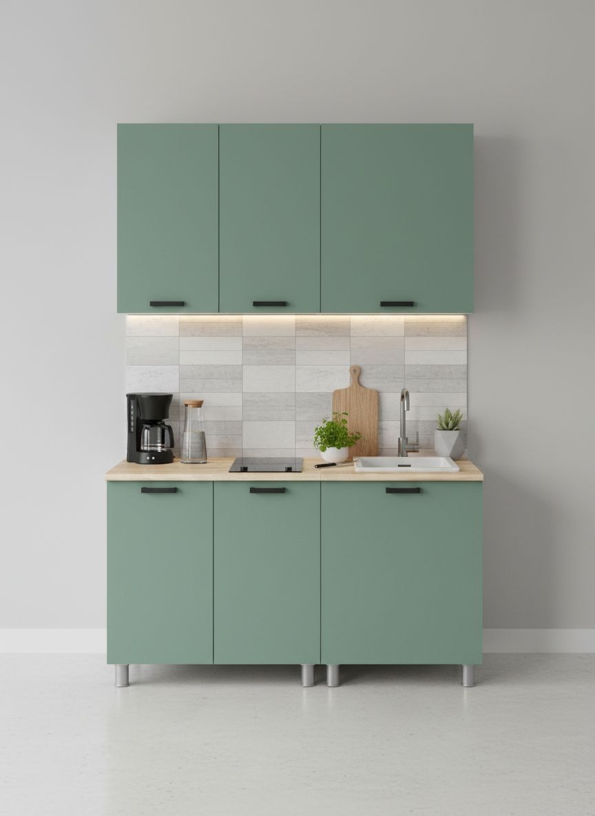 Материал устойчив к выцветанию и воздействию бытовой химии, прост в уходе и рассчитан на длительную эксплуатацию. Поверхность обладает повышенными гидрофобными свойствами, что делает кухню практичной и удобной для ежедневного использования.